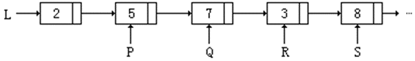 (1)P->next=S; (2)P->next=P->next->next; (3)P->next=S->next; (4)S->next=P->next; (5)S->next=L; (6)S->next=NULL; (7)Q=P; (8)while(P->next!=Q) P=P->next; (9)while(P->next!=NULL) P=P->next; (10)P=Q; (11)P=L; (12)L=S; (13)L=P;