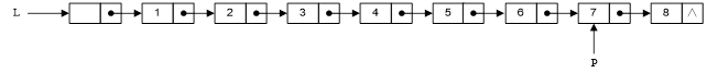(1)P=P->next; (2)P->next=P; (3)P->next=P->next->next; (4)P=P->next->next; (5)while(P!=NULL) P=P->next; (6)while(Q->next!=NULL) { P=Q; Q=Q->next; } (7)while(P->next!=Q) P=P->next; (8)while(P->next->next!=Q) P=P->next; (9)while(P->next->next!=NULL) P=P->next; (10)Q=P; (11)Q=P->next; (12)P=L; (13)L=L->next; (14)free(Q);